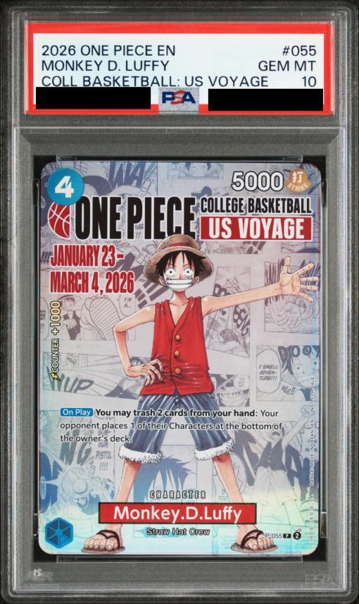 【状態A-/PSA10鑑定済】モンキー・D・ルフィ(英語版/COLLEGE BASKETBALL US VOYAGE)《-》{P-055}